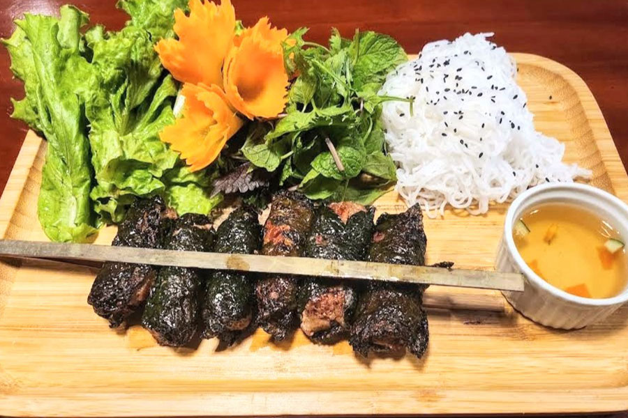 Savor the Flavor: Grilled Beef and Pork in Lolot Leaf – a Vietnamese Delicacy.